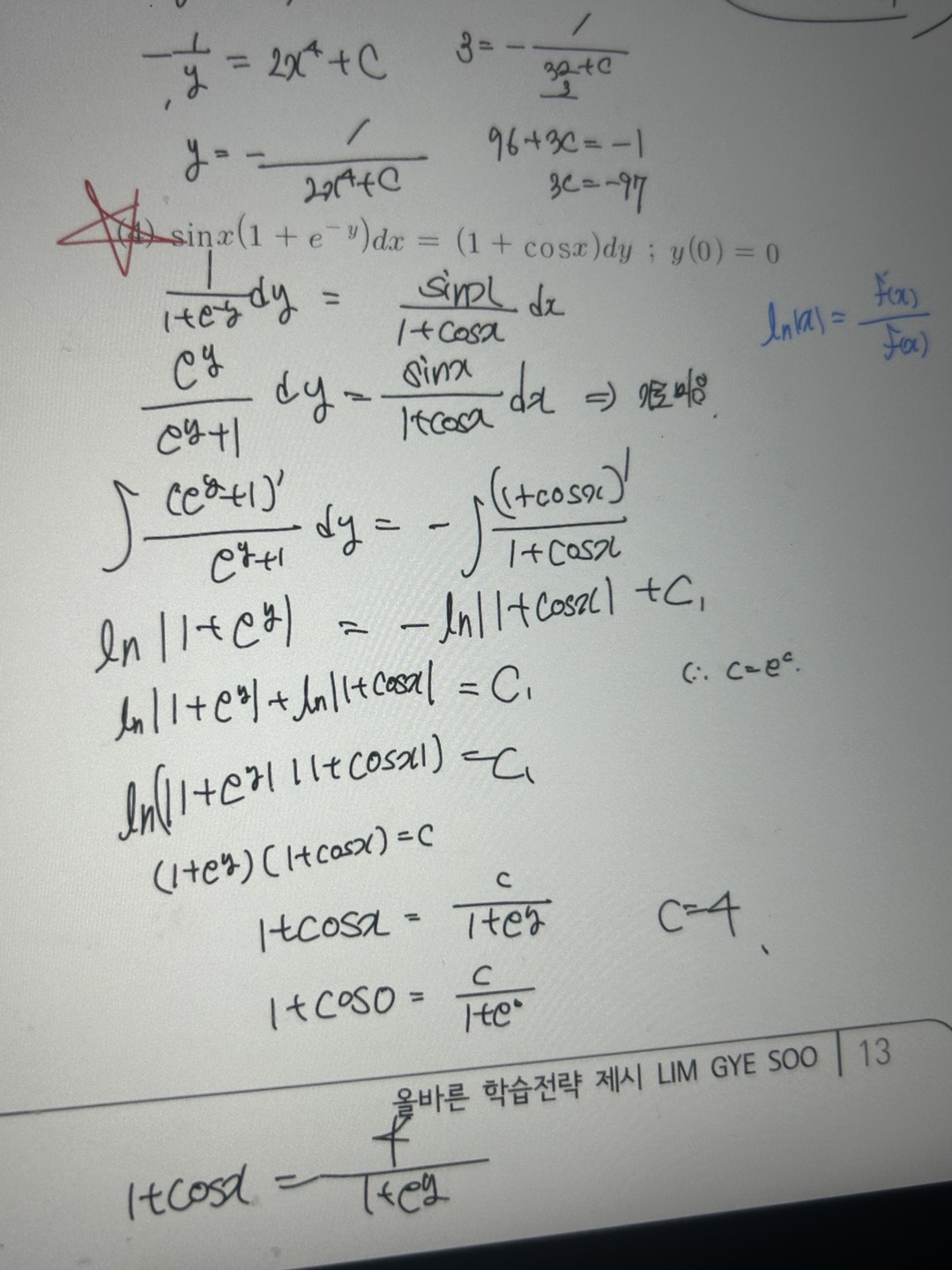 | 제목 | 답변완료 1단원 변수분리형 미분방정식/예제 2.2 4번문제/13p | ||