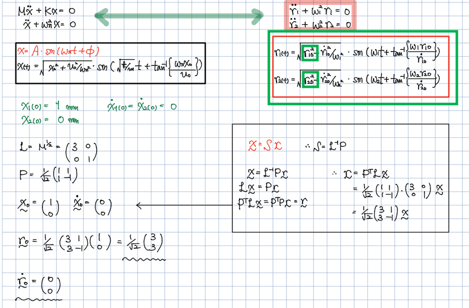| 제목 | 답변완료 19강. Two-Degree-of-Freedom Model(Undamped, Modal Analysis) 2 / r초기조건 대입 | ||