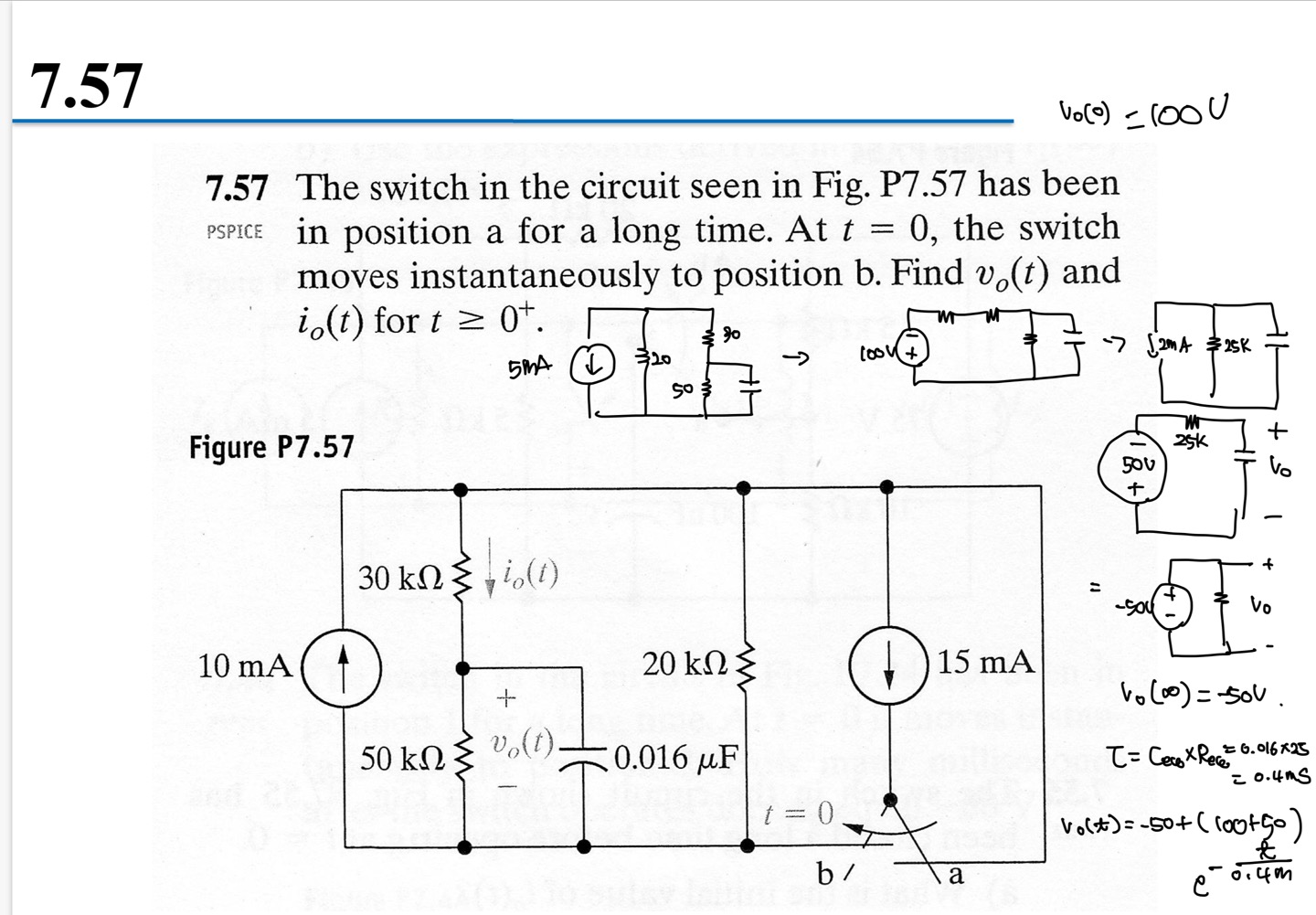 1. t=0-에서 커패시터상태를 생각해보세요.