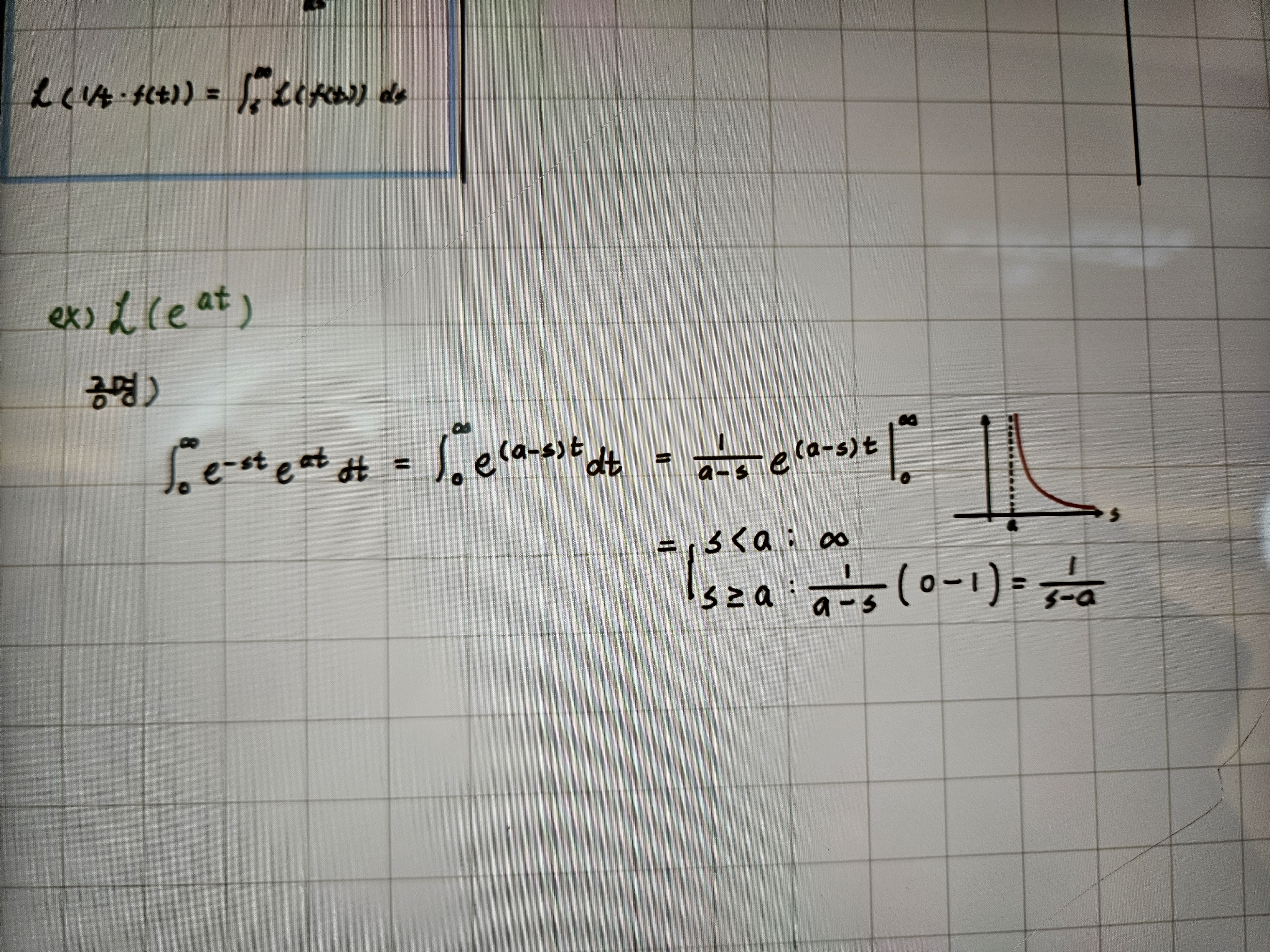 라플라스 변환 강의에서 선생님이 e^at 의 라플라스 변환 유도를 하실 때,