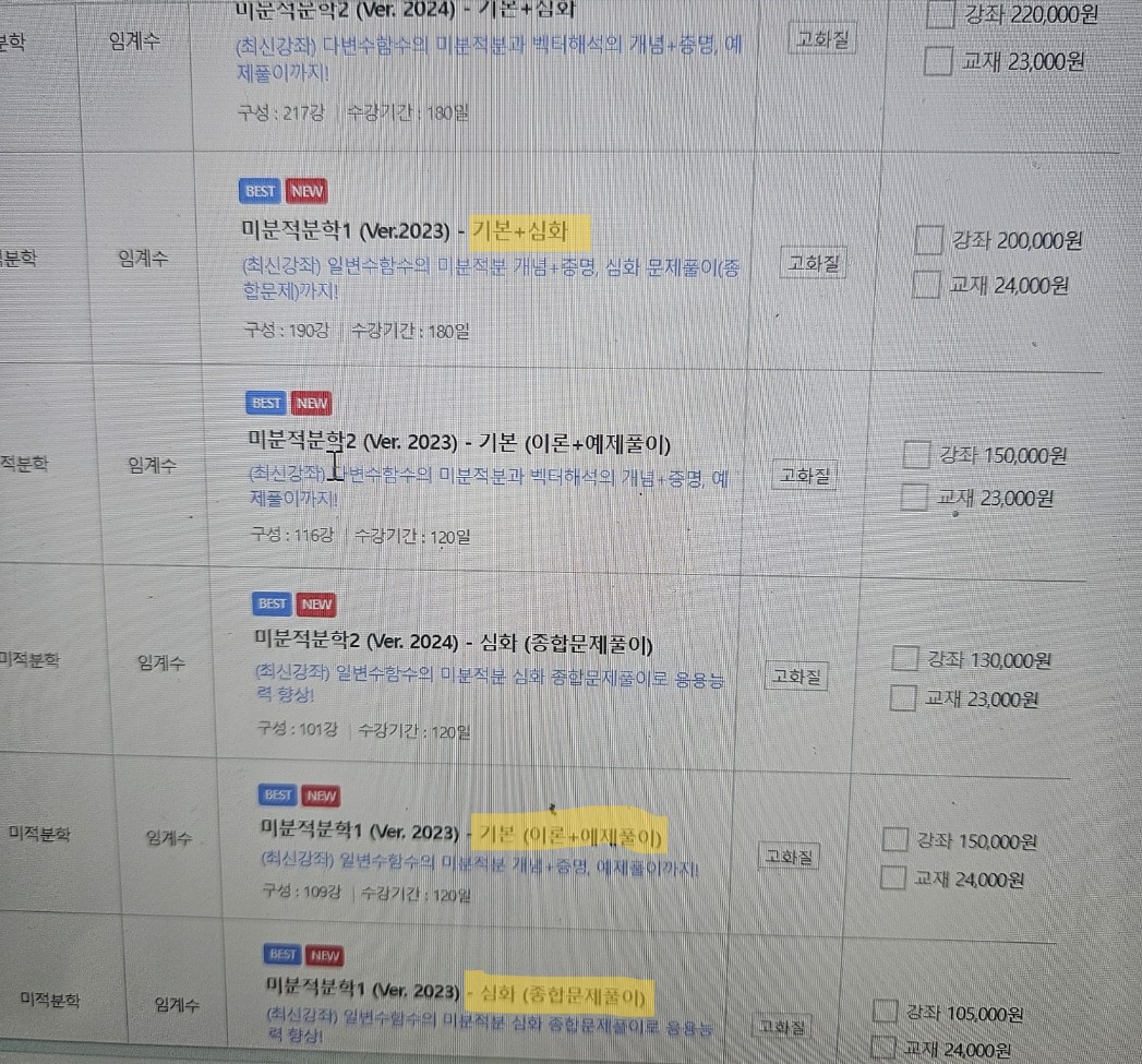 미적분학 1,2를 수강할려고 하는 수강생입ㄴ다. 미분적분학1-기본과 심화가 나누어져 있는 것과 한 강의에 미분적분학1 -기본+심화 합쳐져 있는 것 중에 어떤것을 수강하는 것이 좋을까요?