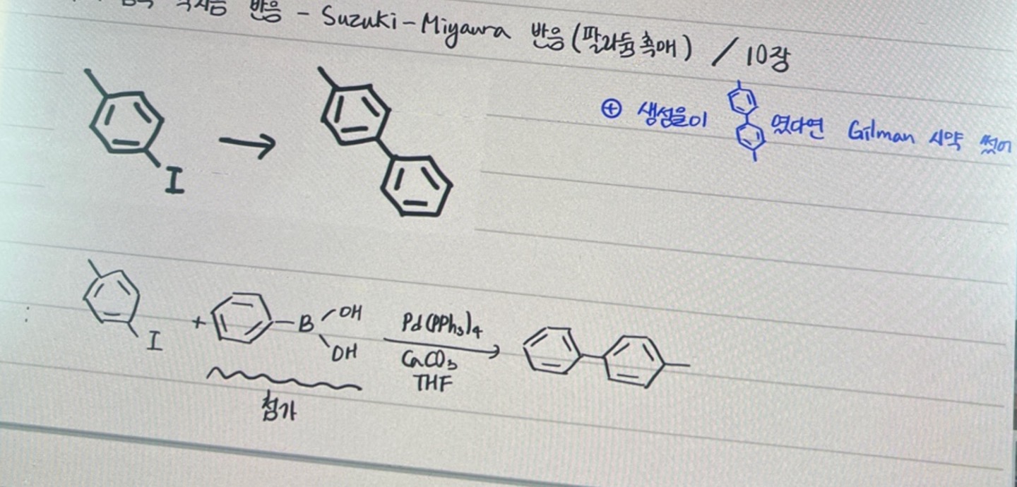 스즈끼 커플링 반응은 유기 금속 화학입니다. 유기화학과는 다르죠.