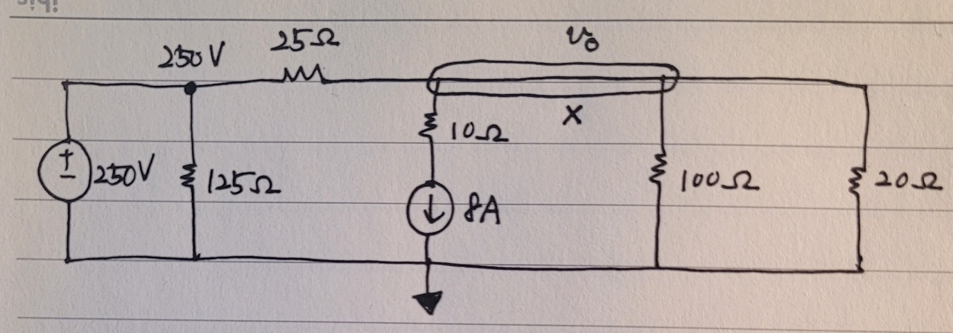 마디전압법으로 푸는 것은 첨부파일과 같이 기준마디와 마디전압을 잡은 후 x마디에서 KCL을 한번만 쓰면 됩니다.