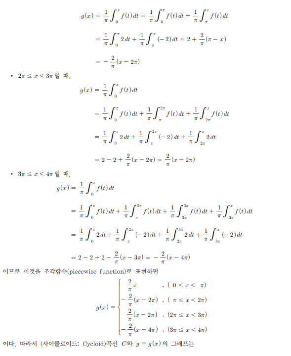 f(t)함수를 f(t) = 2 , ( t = 0 ~ t = π) f(t) = -2 , ( t = π ~ t = 2π) f(t) = 2 , ( t = 2π ~ t = 3π) f(t) = -2 , ( t = 3π ~ t = 4π)