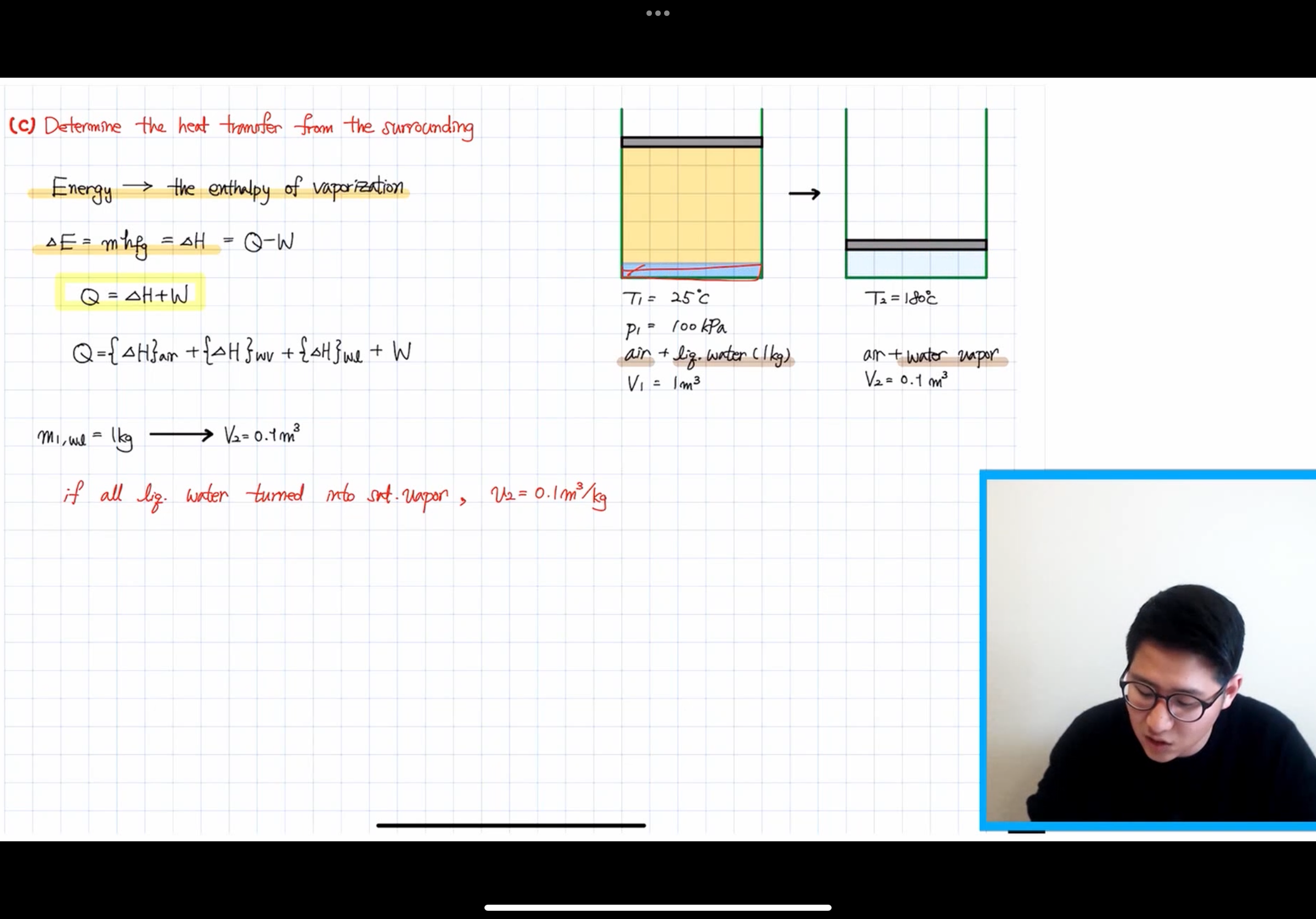 문제를 풀기전에 등압과정에서의 에너지 변화는 엔탈피의 변화와 같다는 것을 이용해 E=Δ H라는 식을 알았고 이걸 이용해서 E=Δ H =Q-W라는 식을 이용해서 열 전달량을 구했는데 물체가 상변화를 할 때는 δ q=du-vdp가 아니라 E=Δ H =Q-W 이 식을 써서 풀어야 하나요?