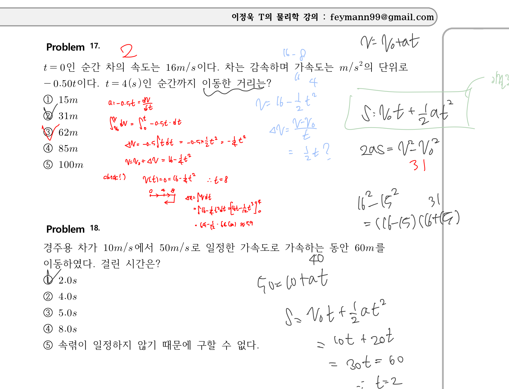 또한, 문제를 해결하는 문항의 상황이 등가속도 운동이 아니라 일반 가속 운동이라...