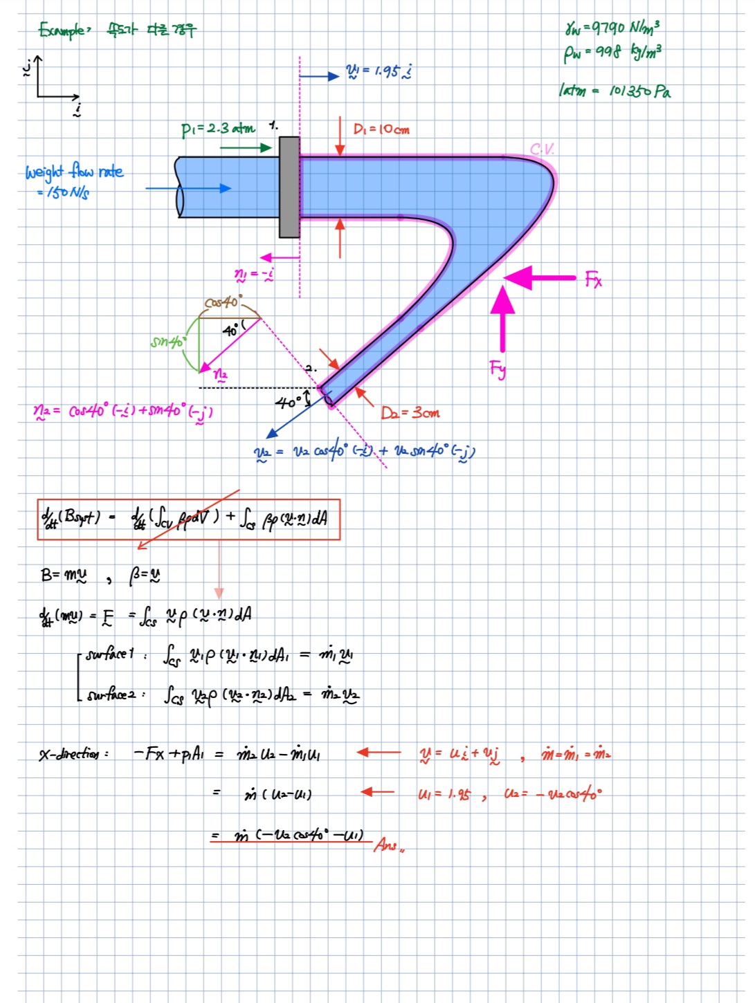 inlet에서 p1은 고려해줬는데 outlet에서 압력에 의한 힘은 고려하지 않나요?