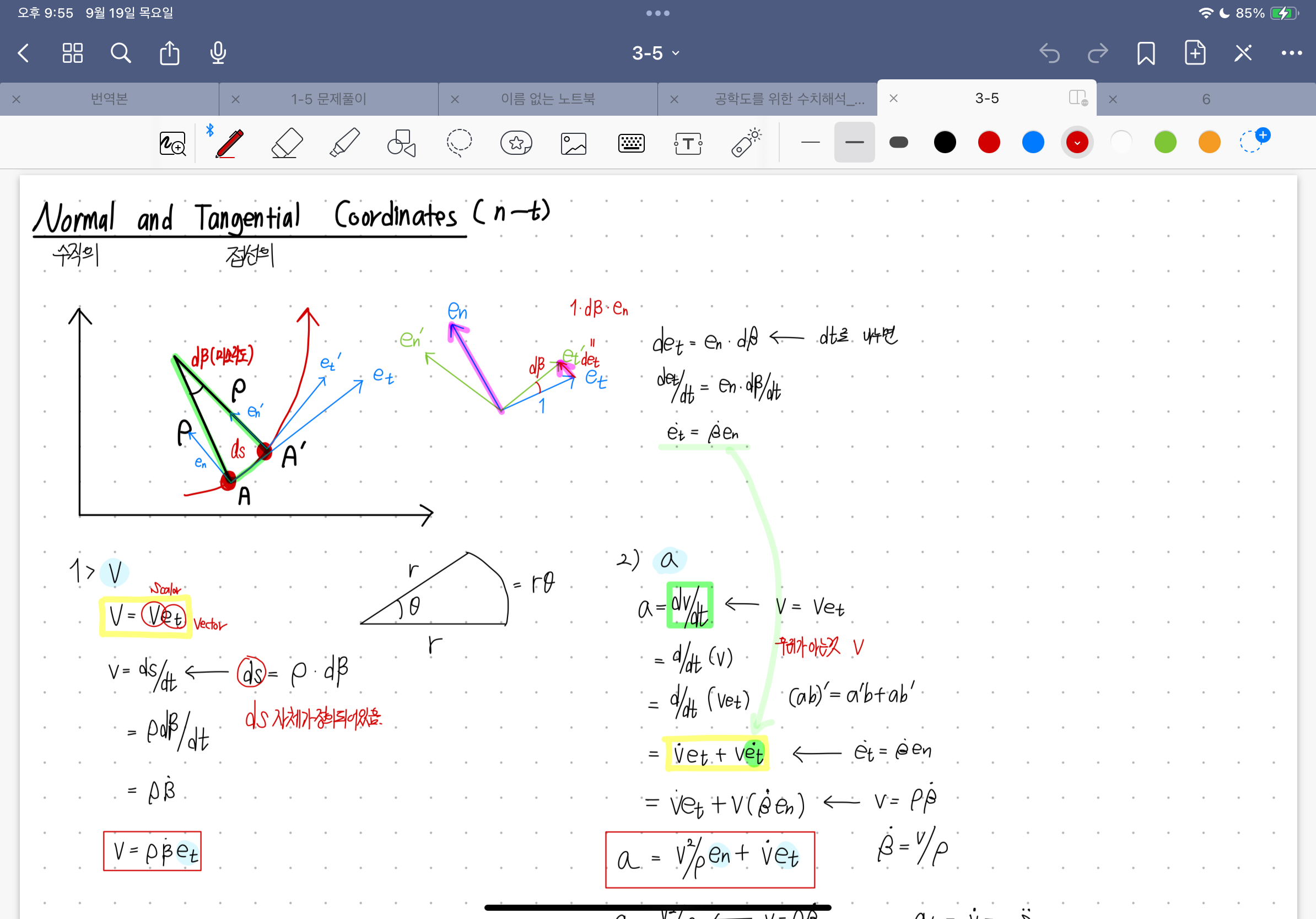 왜 normal ~ 좌표계는 v가 ve^t이고
