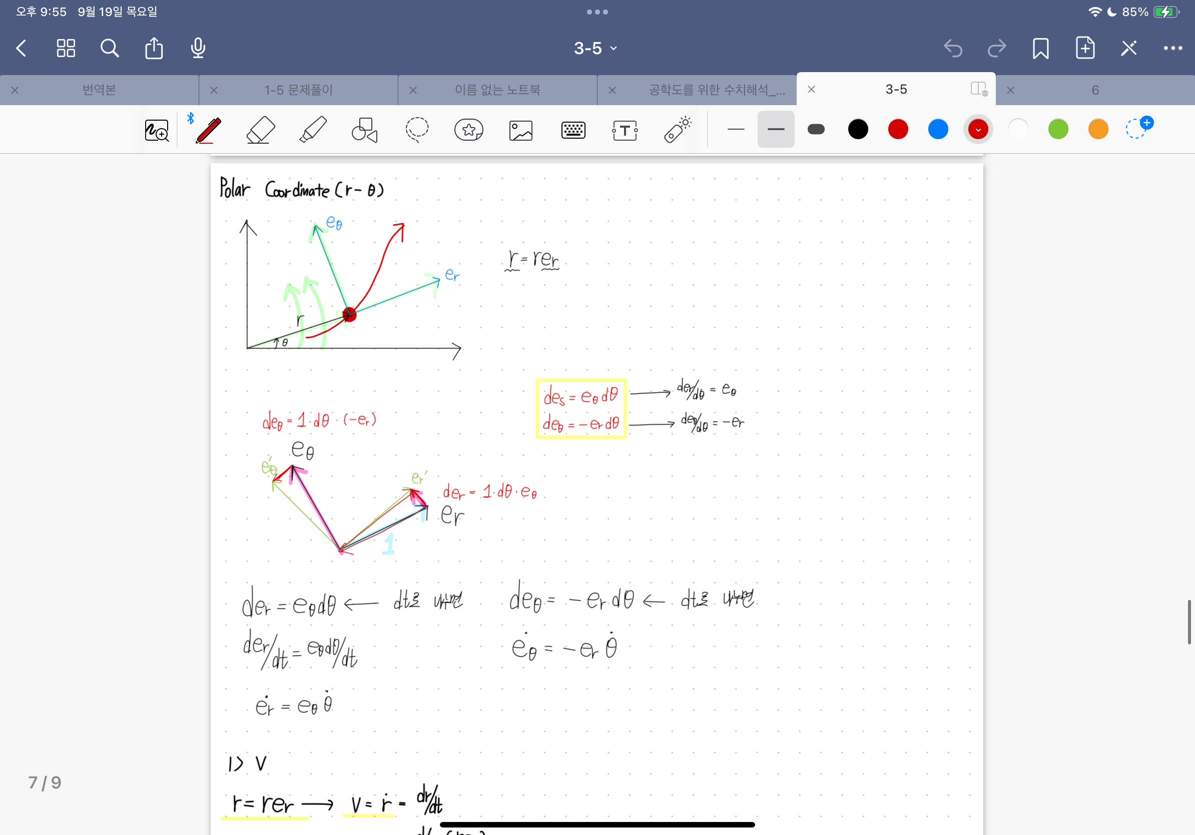 Polar에서도 접선인 속도가 re^r이어야 하는 것 아닌가요?
