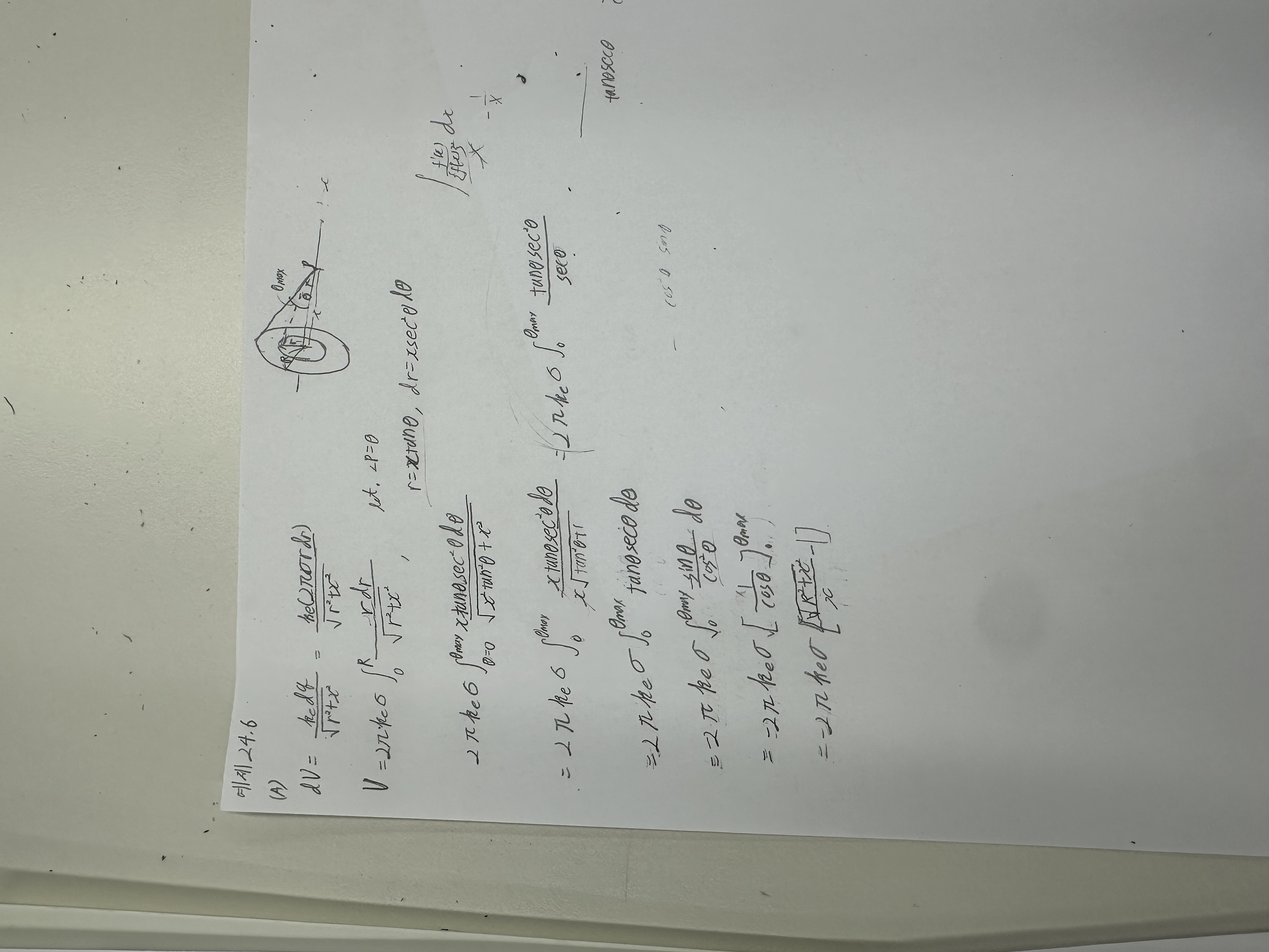 다만, 질문하신 내용의 사진을 보니 위에서 3번째..줄의 분자에서 dr을 변환하는 과정에서 x가 하나 빠져 있습니다.