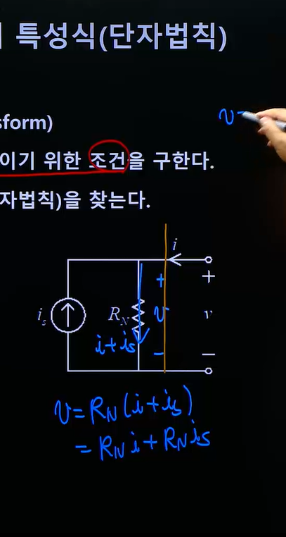 전류가 노드에서 갈라질 수도 있고 이와 반대로 둘 이상의 전류들이 노드에서 합해질 수도 있습니다. 다시 말하면 더 근본적인 것은 KCL입니다. 즉, 어느 마디에 흘러 들어오는 전류의 합과 그 마디에서 흘러나오는 전류의 합이 같다는 것이 핵심입니다. 질문하신 회로에서 RN의 위쪽 마디로 is, i가 흘러 들어오므로 KCL에 의해 RN에는 위에서 아래방향으로 i+is의 전류가 흘러야 합니다.(교재 11페이지의 내용을 참고하시기 바랍니다.)