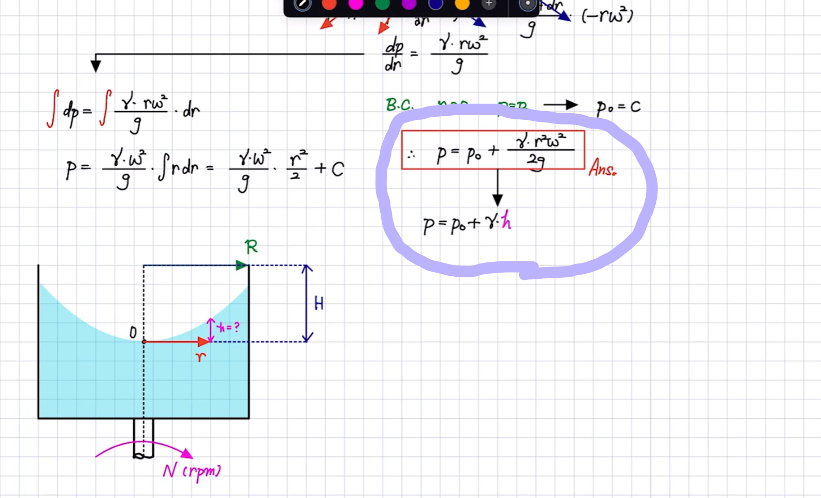 해당 상황은 유체가 rotation해서 가속도를 가지고 있는 상황이라 hydrostatic 상황이 아닌 것 같은데요