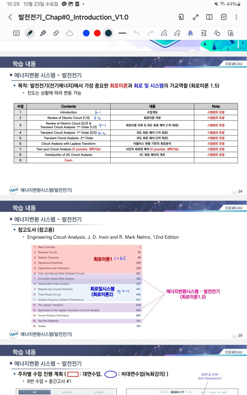 첨부된 파일에 대학에서 수업 나가는 진도가 어디 부분인지 나와있습니다.