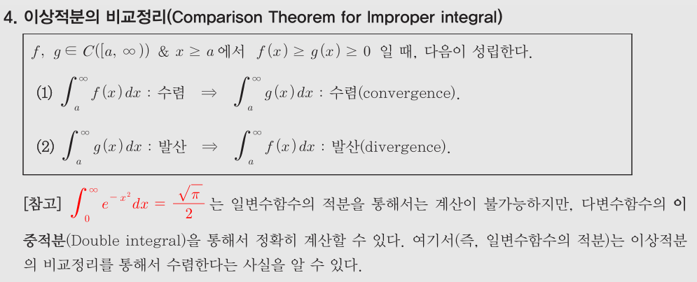 | 제목 | 답변완료 [미적분학] 미분적분학의 올바른 이해 Part 1 (Ver. 2019) / 46강 / 이상적분의 비교정리(p.196) 관련 질문드립니다. | ||