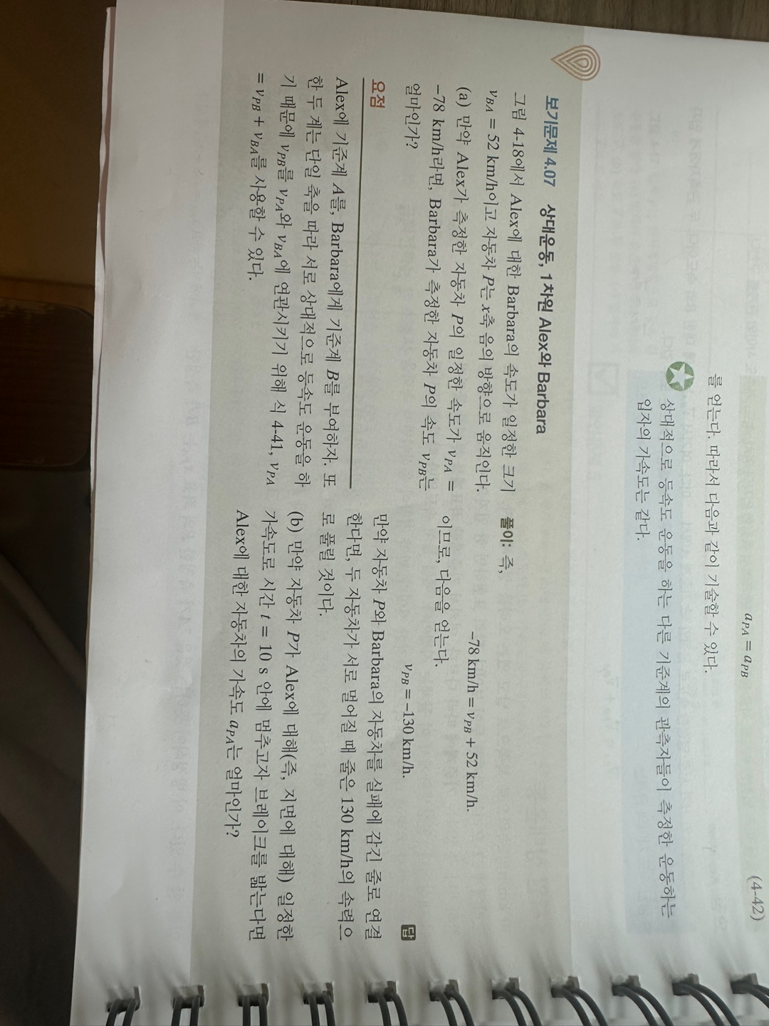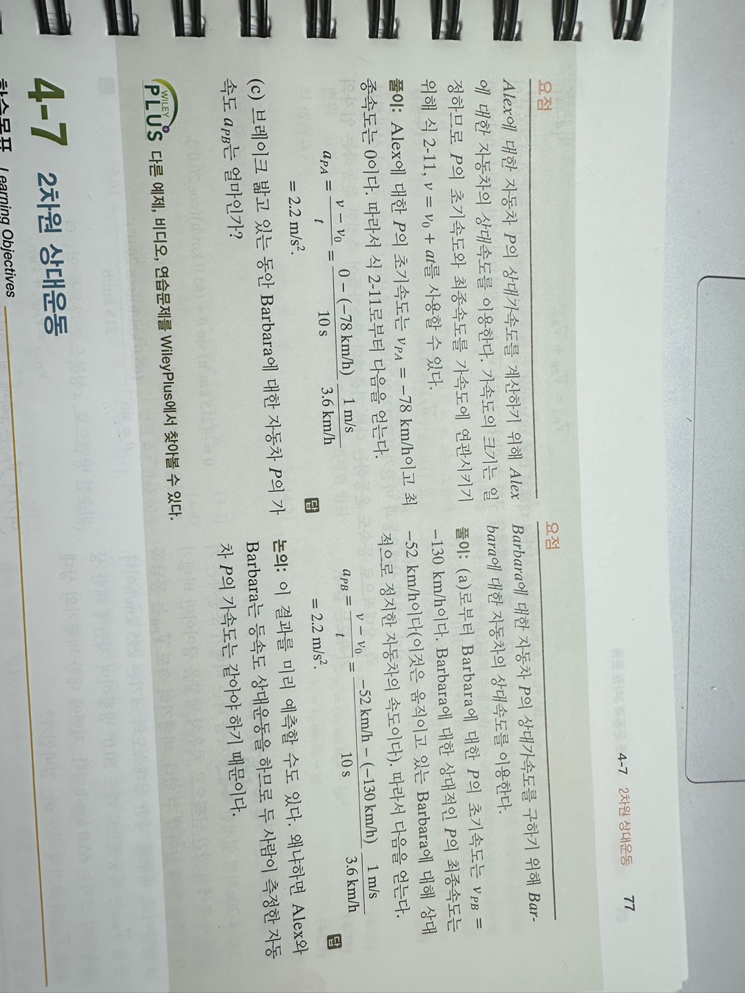 예제 문항의 조건을 보면..km/h 단위로 속도와 속도변화량을 제시했습니다.