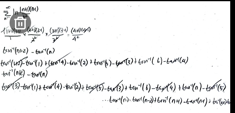 또한 예제 2.14번 같은 경우 중간항이 소거되고 남는 항들은 제가 계산한 결과 -arctan(1)-arctan(2)+arctan(k+1)+arctan(k+2)로 -arctan(2)로 인해 계산이 되지 않습니다. 풀이 부탁드립니다. 답변 완료된 질문과 답변은 수정 및 삭제가 불가합니다. |