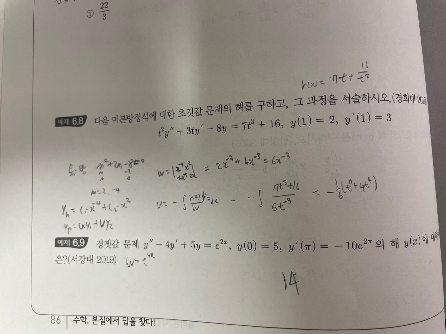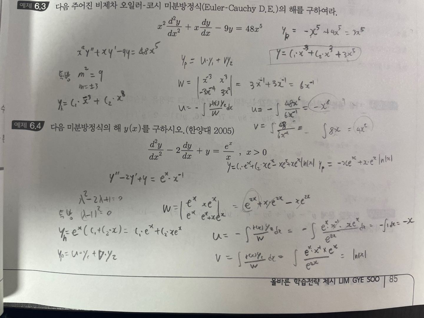 85페이지 예제6.4번과 86페이지 예제 6.8번입니다. 6.4번같은 경우 y p 값이 답지랑 계속 다르게 나오는데 풀이를 볼 수 있을까요, 6.8번은 계산이 너무 복잡하여 답이 안나옵니다. 답변 완료된 질문과 답변은 수정 및 삭제가 불가합니다. |
