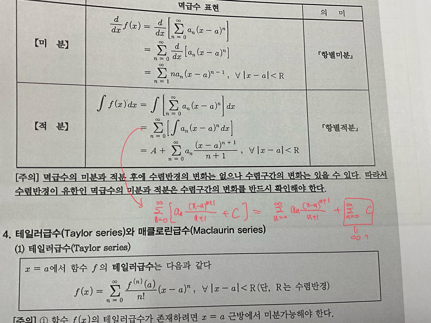 급수 적분할 때 2번째 줄에서 3번째 줄로 넘어가는 과정이 이해되지 않습니다 제가 밑에 적은 빨간색 부분처럼 되어야하는 것 아닌가요? 답변 완료된 질문과 답변은 수정 및 삭제가 불가합니다. |