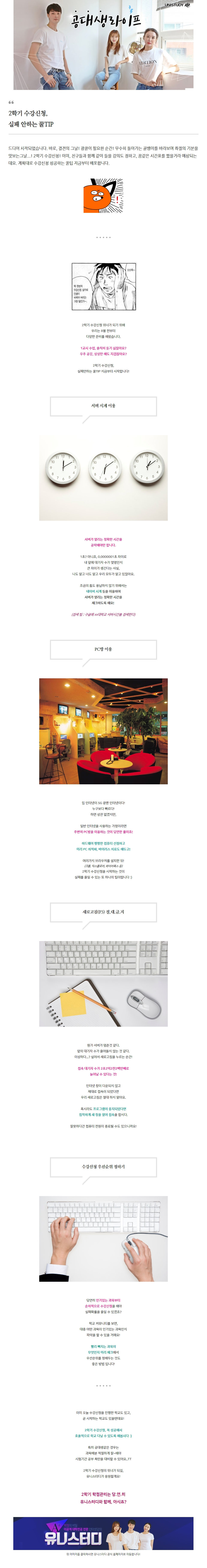 게시판 글보기 제목 [대학생활] 2학기 수강신청, 실패 안하는 꿀TIP 등록일 2019-08-02 조회수 1067 목록 다음글 [취업스펙] 방학기간 꼭 해야 할 공대생 대외활동 리스트 이전글 [취업스펙] 공기업 임원면접 예상 질문부터 모범 답변까지!