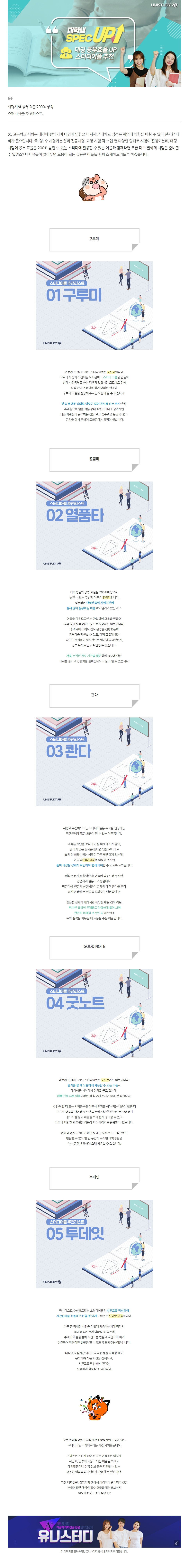 게시판 글보기 제목 대딩시험 공부효율 200% 향상 스터디어플 추천리스트 등록일 2021-05-12 조회수 2246 목록 다음글 어서와 유니스터디는 처음이지? 혜택부터 받아볼까? 이전글 상경계열 필수 한경테셋 나는 인강으로 완전정복