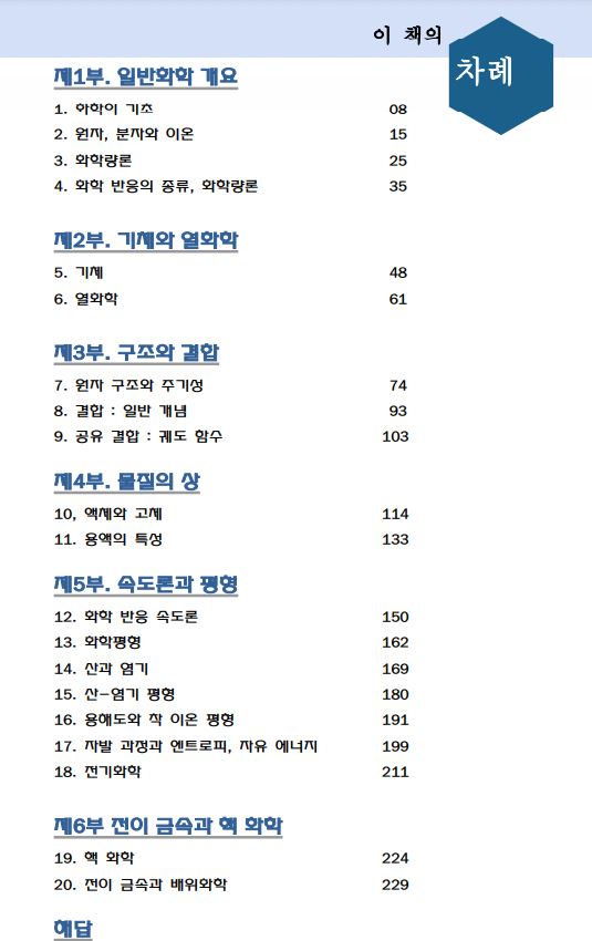 기타 교재의 전반적인 일반화학 내용을 숙지하시기에는 무리가 없습니다.