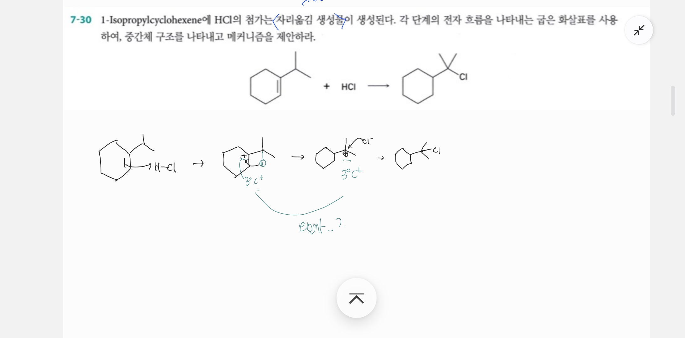 1. 첫번째사진 맥머리 7-30 운졔에서 같은 3차탄소양이온 임에도 자리옮김이 일어나는 이유가 무엇인지 궁금합니다. 2. 2번째사진 7-28에서 노란색동그라미와 같이 이중결합자리의 vinyl 탄소 양이온은 젤 낮은 우선순위이기 때문에 고려치 않는게 맞는지 여쭙습니다. 이중결합 주위에 어떤 치환기가 오든 이중결합 탄소에 생긴 양이온은 모두 vinyl 탄소 양이온이 맞는지 확인하고 싶습니다. 확인 감사합니다. 좋은 하루되시길 바랍니다. 답변 완료된 질문과 답변은 수정 및 삭제가 불가합니다. |