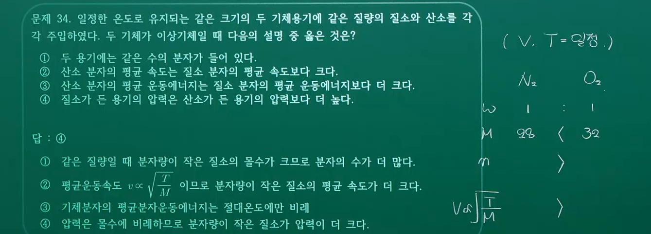 2번문항 질소가 분자량 더 작으니, 맞는선지 아닌가요??