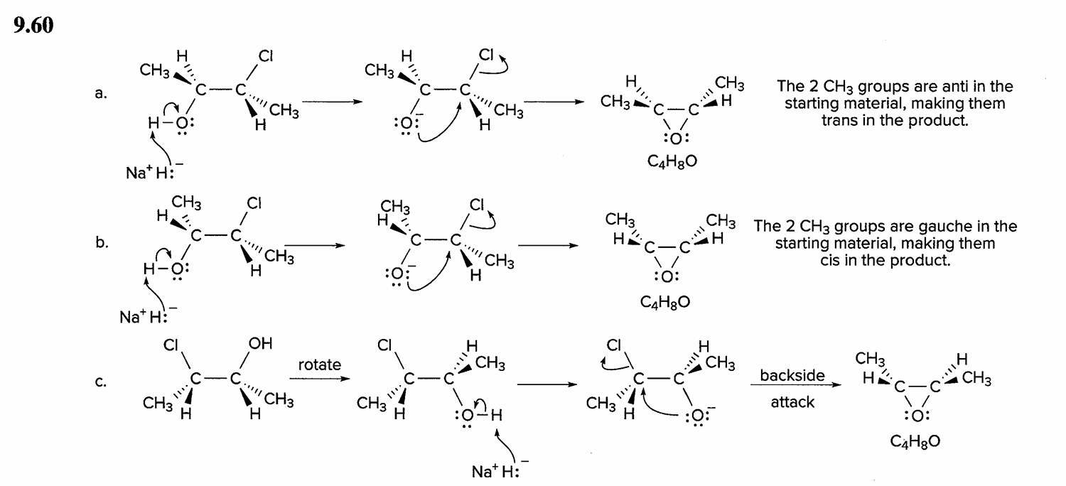 c는 반응물이 분자내 SN2하기위해 180도 회전해야 하므로 반응물에서 CH3는 대쉬/대쉬 였지만 생성물에서는 쐐기/대쉬