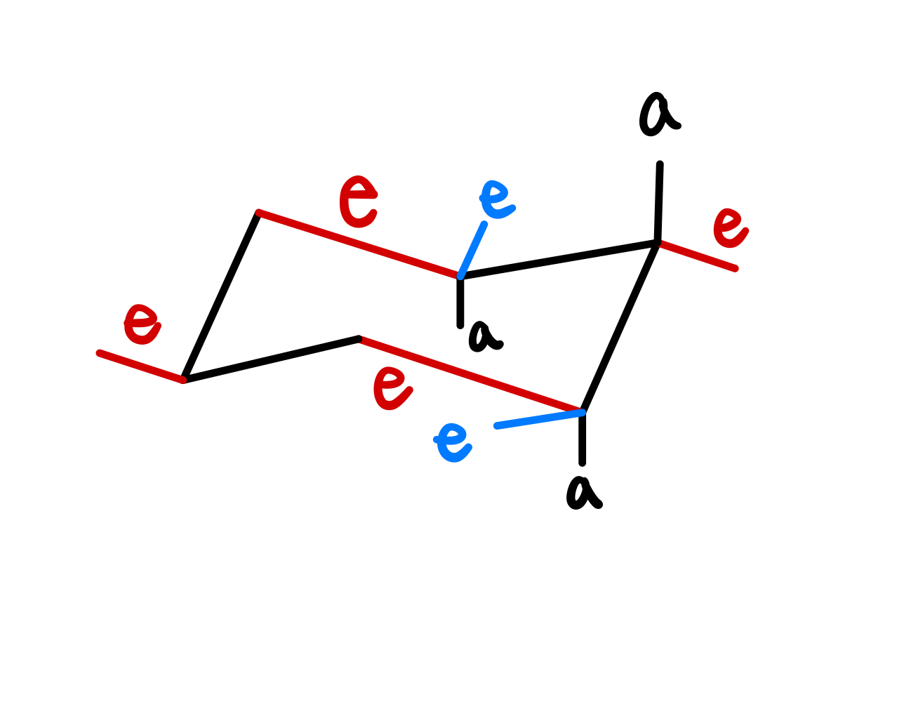Gauche를 판단할 때 앞의 탄소와 뒤의 탄소의 a, e거나 e, e면 Gauche 관계라고 하셨는데 파란색으로 표시한 선도 앞의 탄소에 대하여 뒤의 탄소의 equatorial인데 왜 파란색 equatorial은 Gauche 관계로 세지 않는지 모르겠습니다. 답변 완료된 질문과 답변은 수정 및 삭제가 불가합니다. |