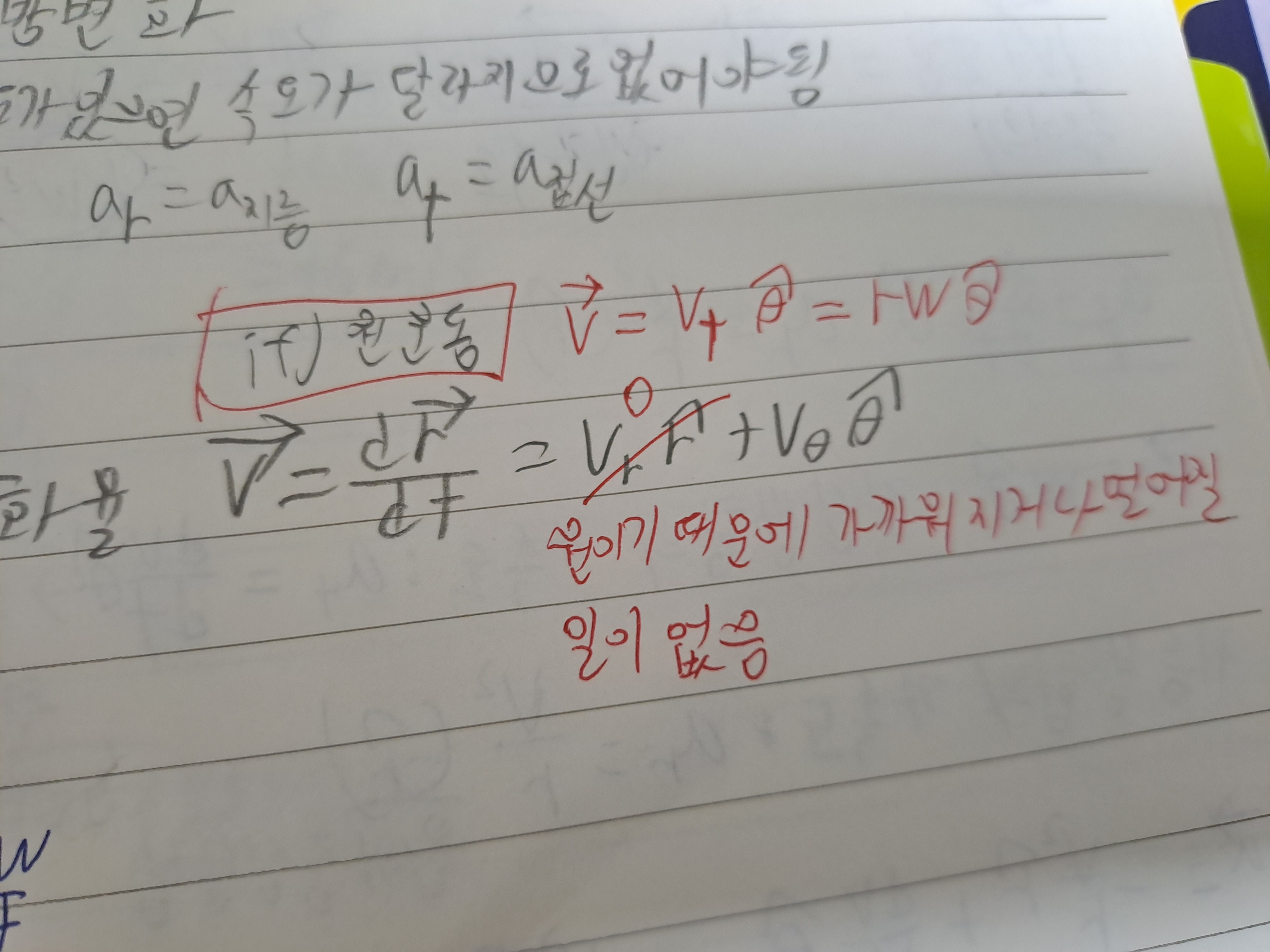 2차원 상에서 지름방향 속도가 존재한다면...관찰자가 바라보았을 때...멀어지거나 가까워짐이 있음을 의미하는 것이고...이는 원운동이라고 할 수 없고..