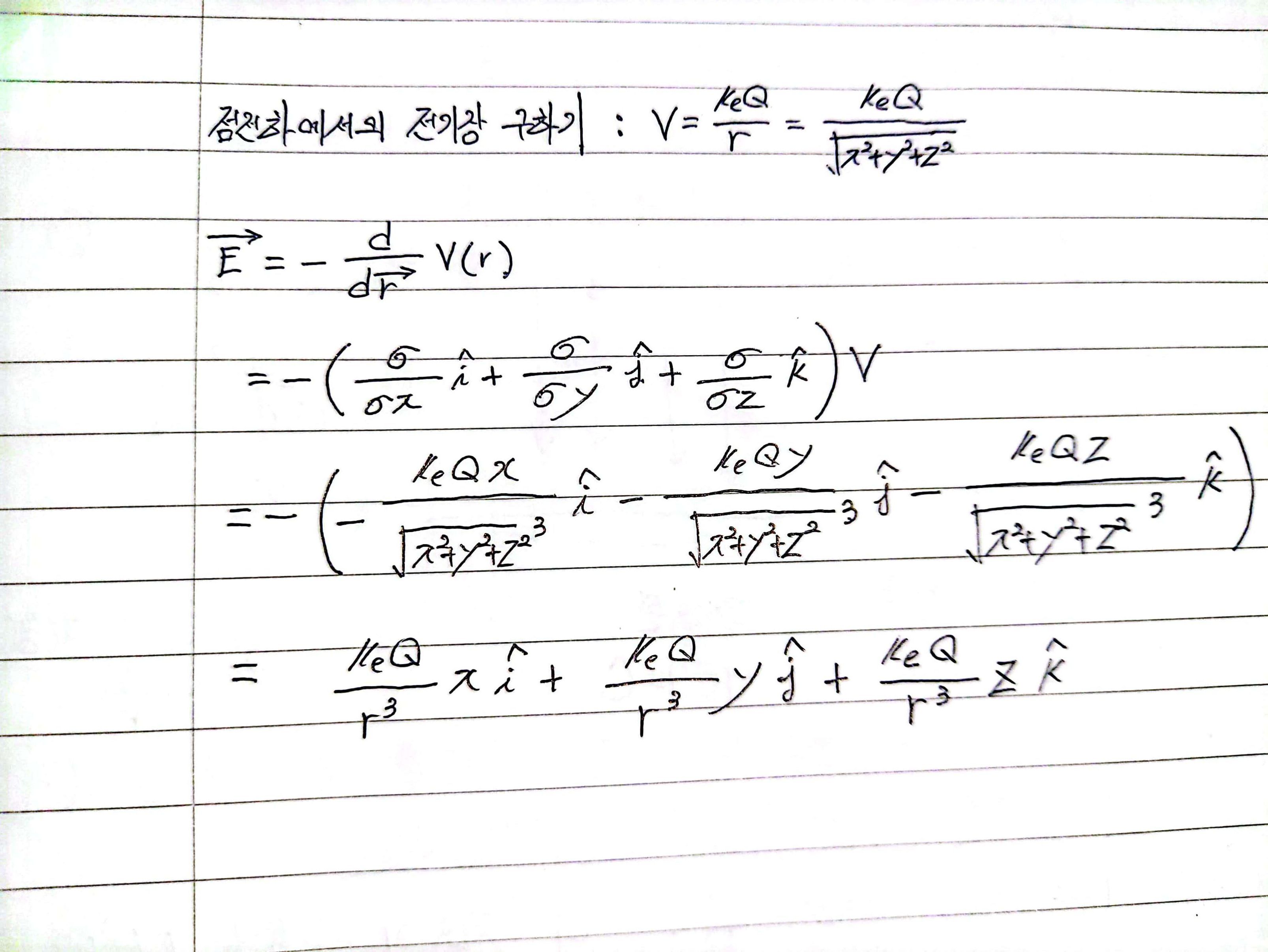 전위를 구한 다음...위의 좌표계에서 원하는 성분의 미분을 통해 원하는 전기장 성분을 구할 수 있는 것입니다.