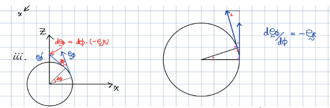 혹시 위에 나온 사진에 대한 질문이었을까요? 해당 내용에서 ∂eϕ∂ϕ=-eR 부분이 이해가 안되셨던 거라면 책과 영상을 여러 번 보시면서 이해해 보시기 바랍니다.