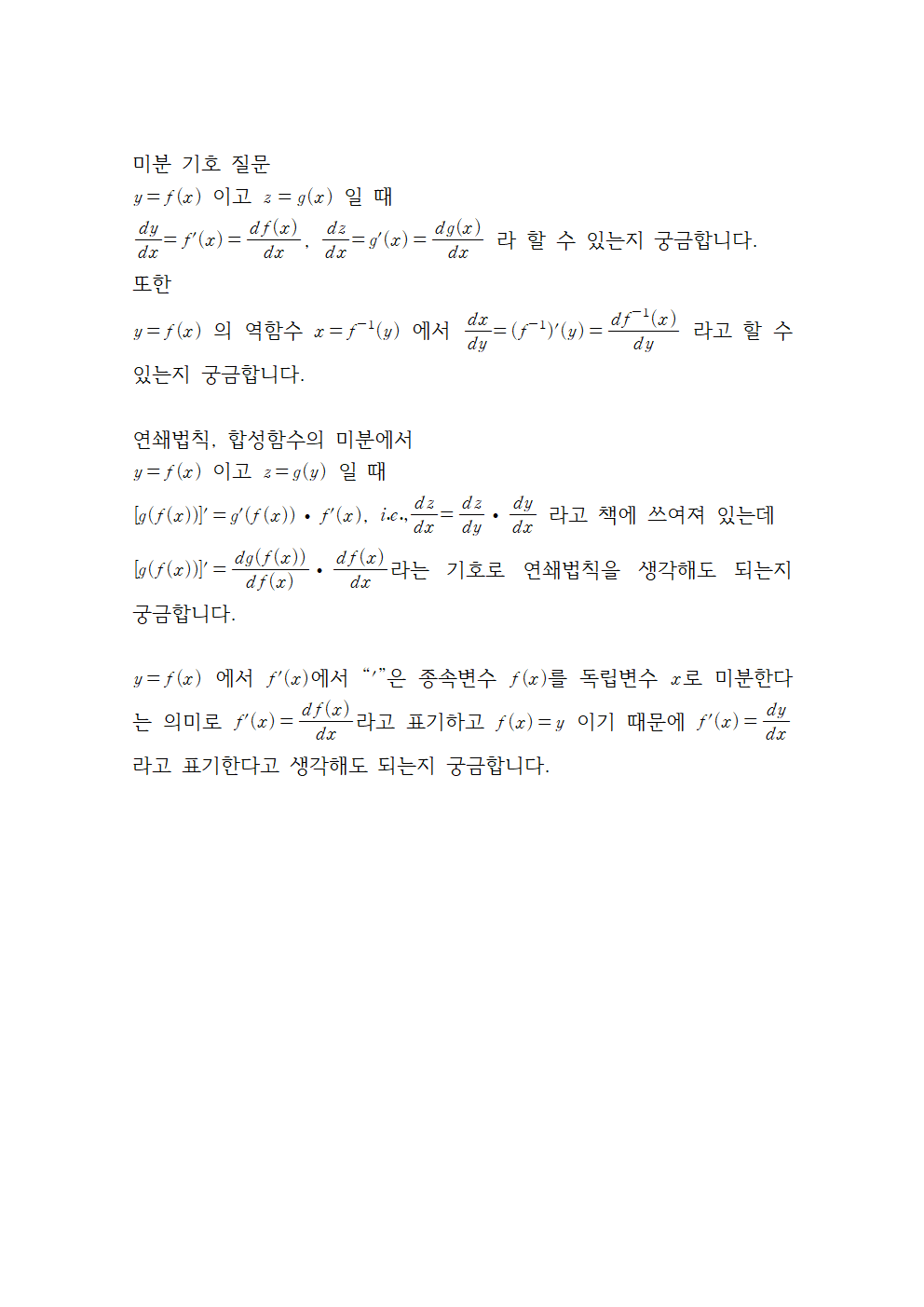 | 제목 | 답변완료 미분기호와 연쇄법칙 질문 | ||