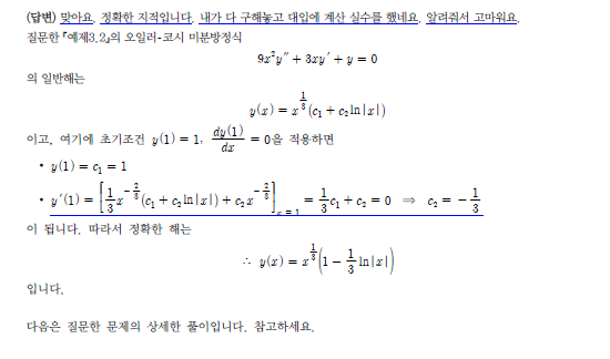 1/3 c1+c2가 되어서 c1은 1이니 c2는 -1/3이 되어야 하는것 아닌가요? 이해가 안됩니다 27강 22분대 예제 3.2번입니다 답변 완료된 질문과 답변은 수정 및 삭제가 불가합니다. |