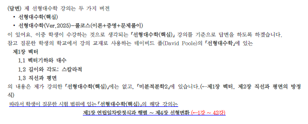 | 과목 | 선형대수학 | 강좌명 | [선형대수학] 선형대수학 (핵심) |