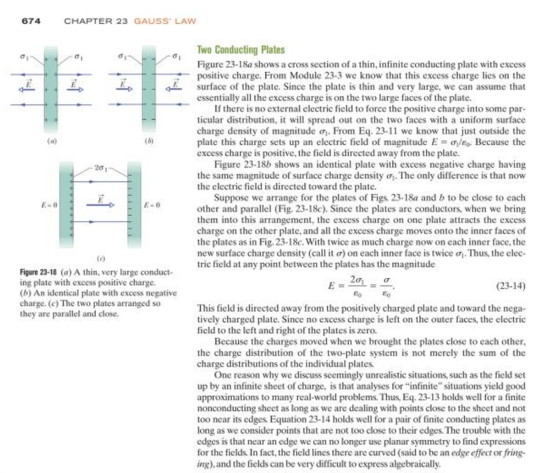 왜냐하면 도체판 사이에서는 두 개의 전기장이 합쳐져 사실상 면전하밀도가 두 배가 되기 때문이죠.