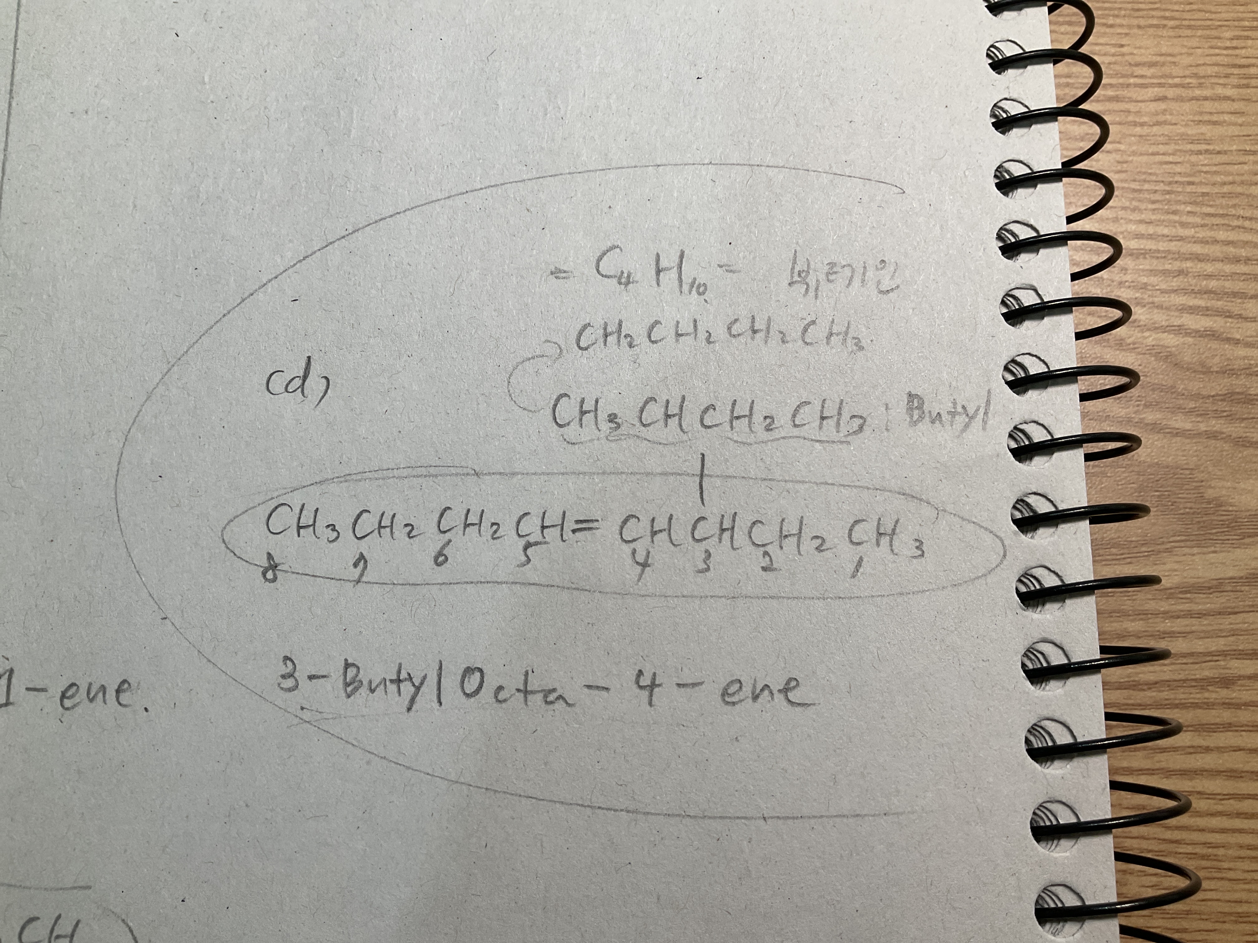 첨부된 사진과 같이 작용기 CH3CHCH2CH3는 C4H9인 뷰틸기라 할 수 있지 않나요?? 따라서 오른쪽 탄소부터 번호를 매기면 3-뷰틸옥타-4-엔 이 답 아닌가요??ㅠ
