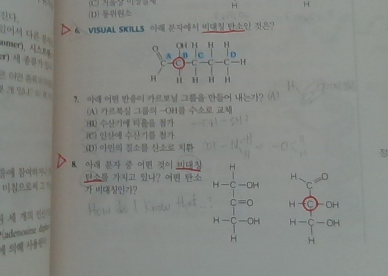| 제목 | 답변완료 [일반생물학Ⅰ] 4장 연습문제 6번과 8번/ 비대칭탄소 | ||
